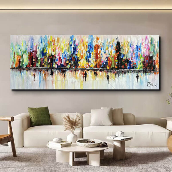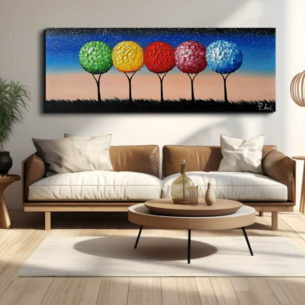 Tillsammans med våra talangfulla konstnärer arbetar vi aktivt på att hela tiden få in nya, stora och unika tavlor till vårt galleri. När en ny stor tavla kommer in på lager brukar det inte ta lång tid innan den funnit ett nytt hem, den här typen av konst efterfrågas alltmer av våra kunder. En av förklaringarna till detta, förutom att tavlorna är vackra, kan vara att nya byggnader har större vardagsrum och kök med betydligt mer väggyta än vad som var vanligt tidigare.