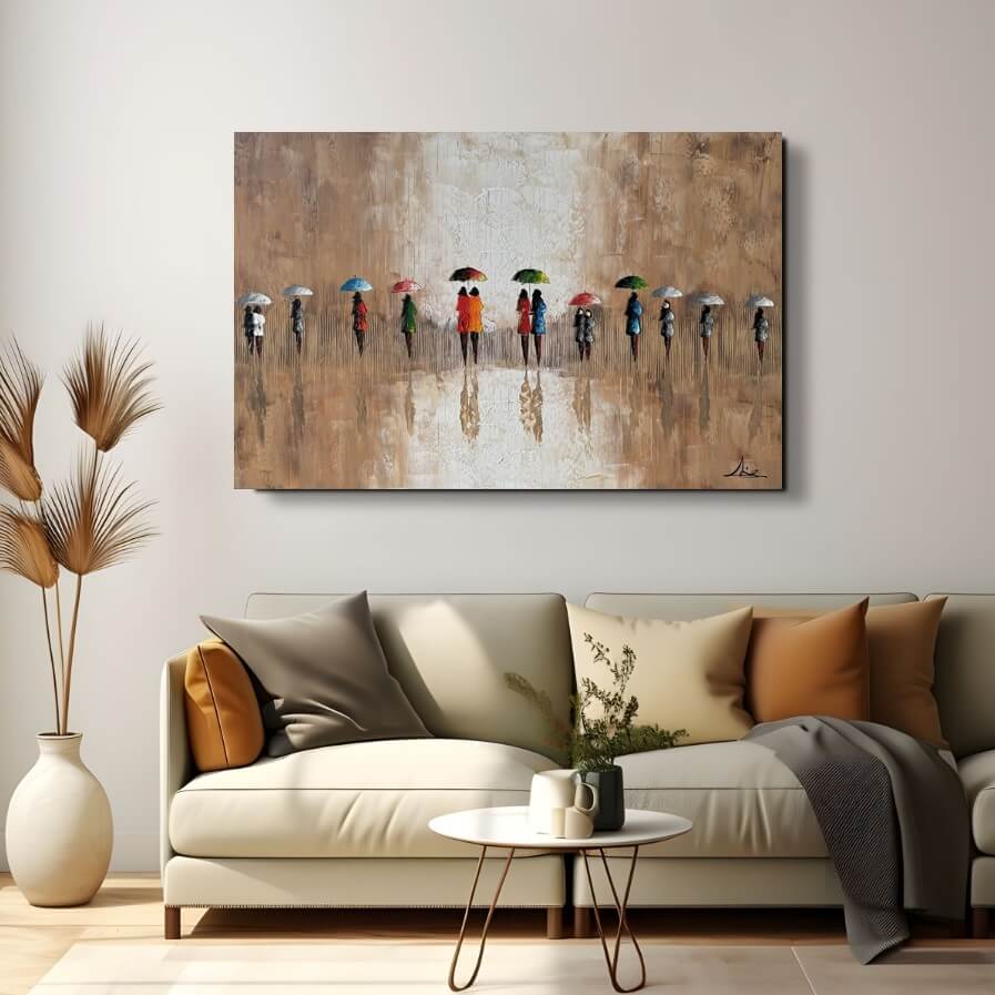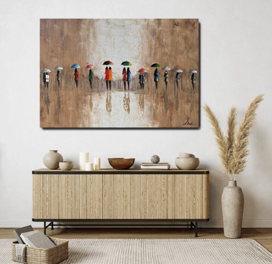 Handmålade Oljemålning – A Walk in the Rain I