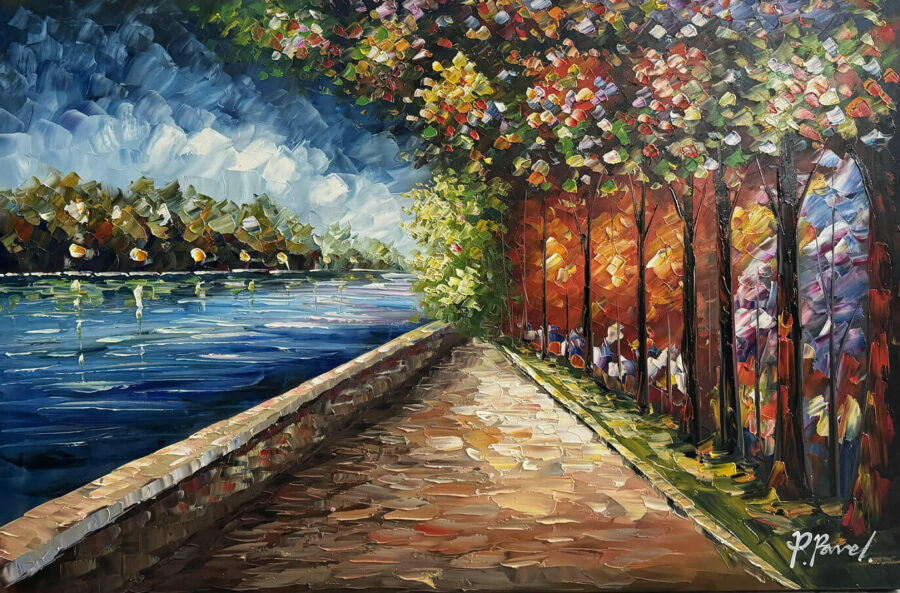 Målningen är en handmålad oljemålning av en av våra duktiga konstnärer. Det är inte ett tryck eller något liknande. Oljefärg är den klassiska formen av färg för tavlor. Oljemålningar kännetecknas av sitt goda färgdjup.